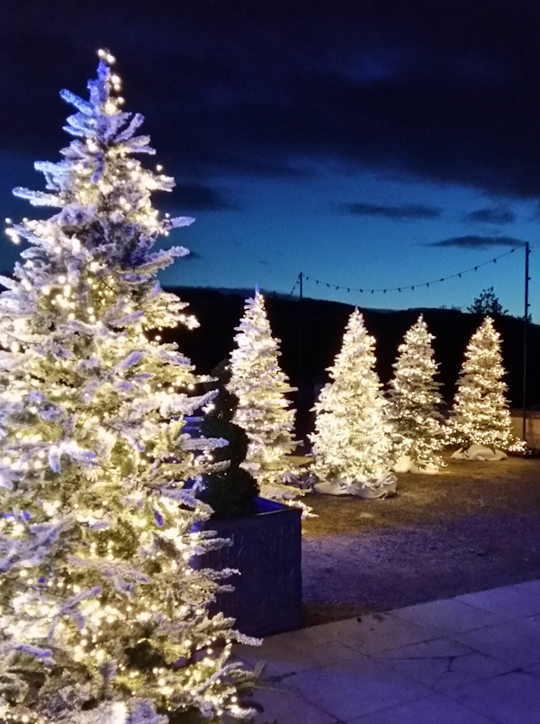 We have lots of Christmas Trees, from 1.2m to 2.4m high – snow covered and with white fairylights